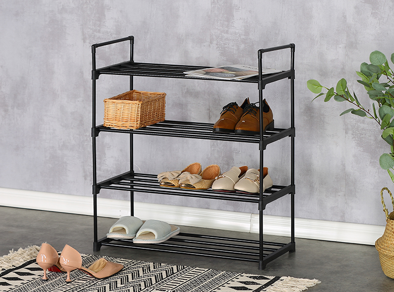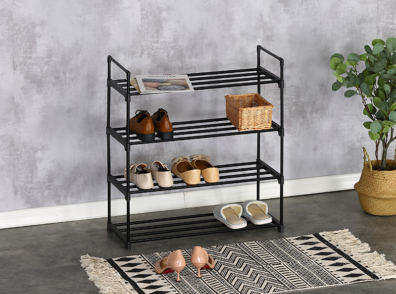 Name:SHOE RACK-XJ6574Turnover time:2022/10/29 16:52:38 Product Name ◎Shoe Rack ◎4-Tier Organizer for Closet, Bathroom, Entryway ◎Shoe Shelf Holds 12 Pair Sneakers, Heels, Boots Product Parameters Model:XJ6574 Product Size:65*30*74cm Material:(1)Steel tube with electric coating in black (2)Plastic connector in black Shape:Rectangular |
